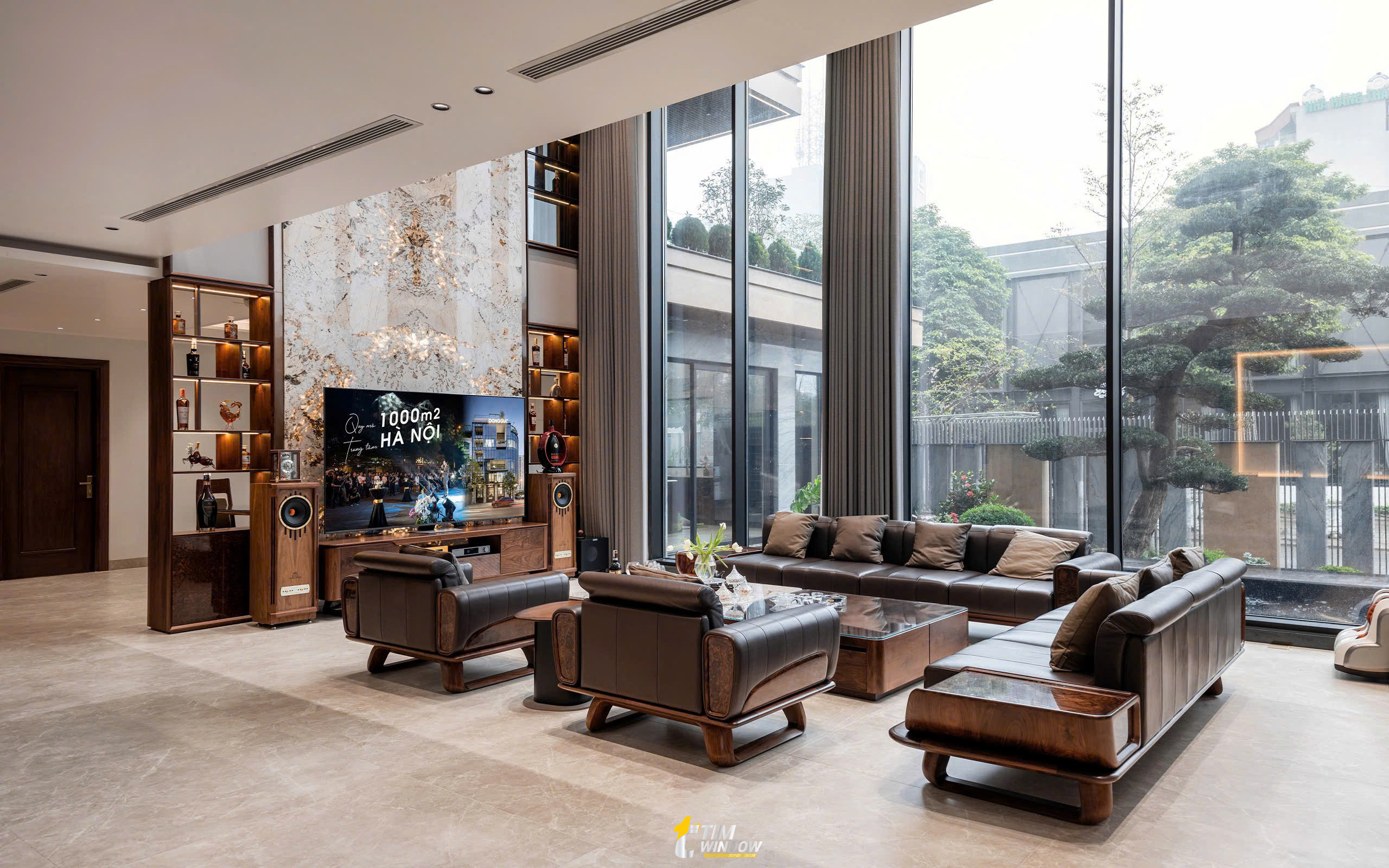 Đặc biệt với những vách kính hơn 6m nhập khẩu Châu Âu mang lại điểm nhấn mạnh mẽ cho ngôi nhà và với kích thước như vậy rất hiếm có ở Việt Nam.